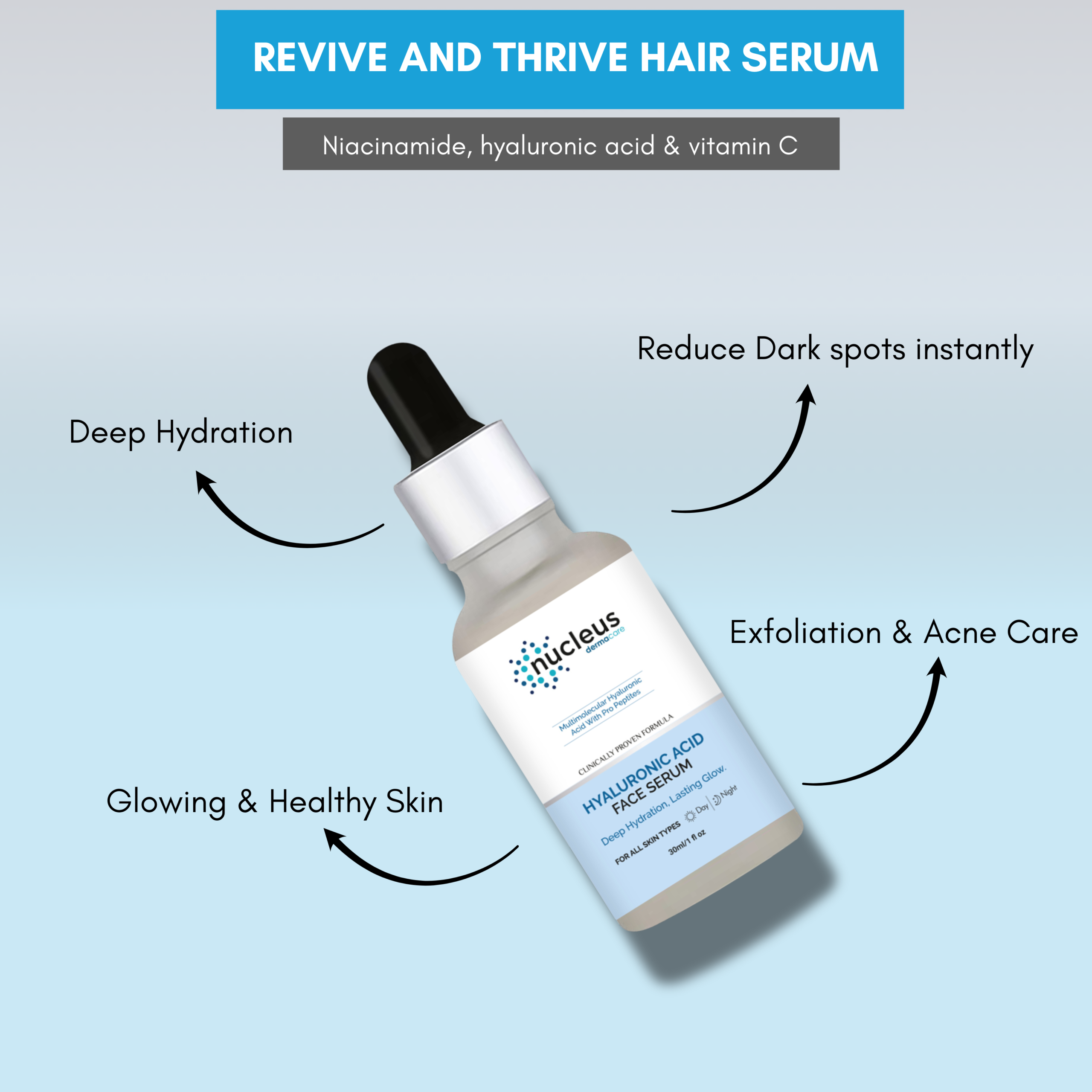 hyaluronic acid serum india, dry skin hydration serum, plumping face serum, moisture boosting skincare, NucleusDermaCare hydrating serum