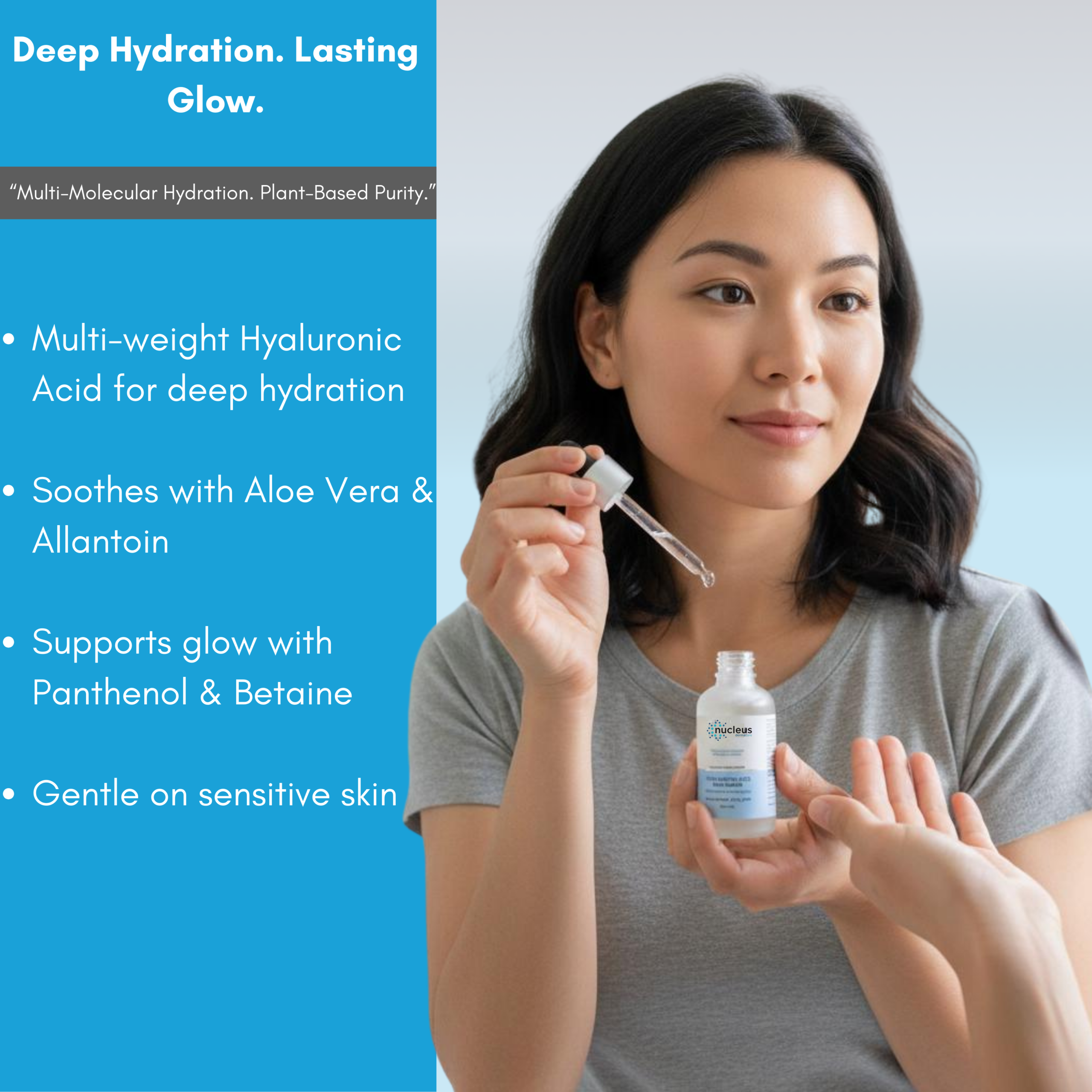 NucleusDermaCare Hyaluronic Acid Serum | Deep Hydration, Skin Plumping & Fine Line Reduction | Lightweight, Fast-Absorbing Moisture Booster