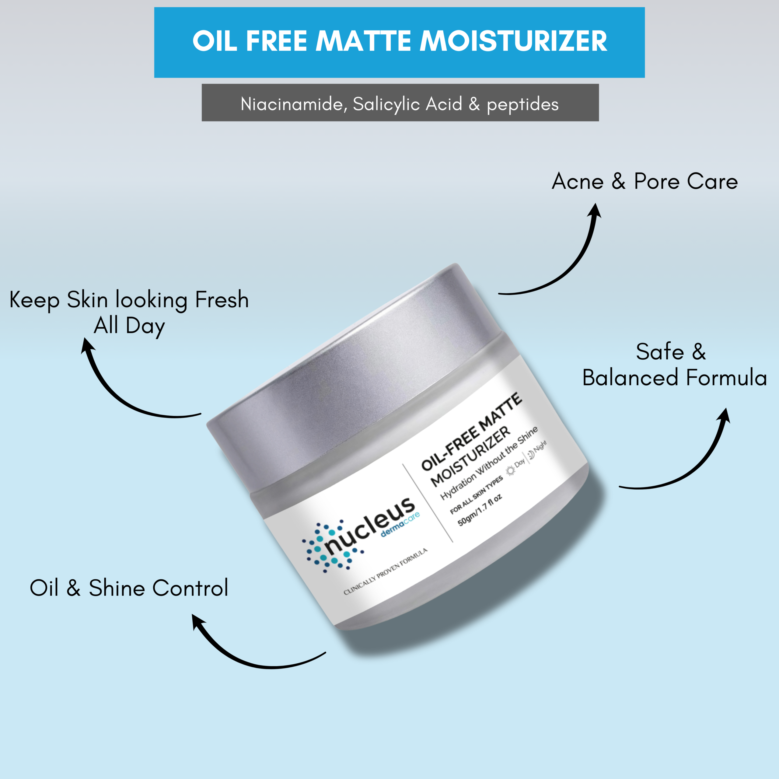 NucleusDermaCare Oil-Free Matte Moisturizer | Shine Control, Lightweight Hydration | Ideal for Oily & Acne-Prone Skin